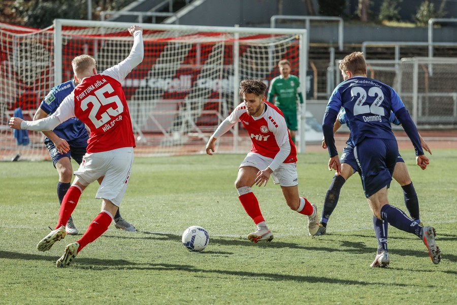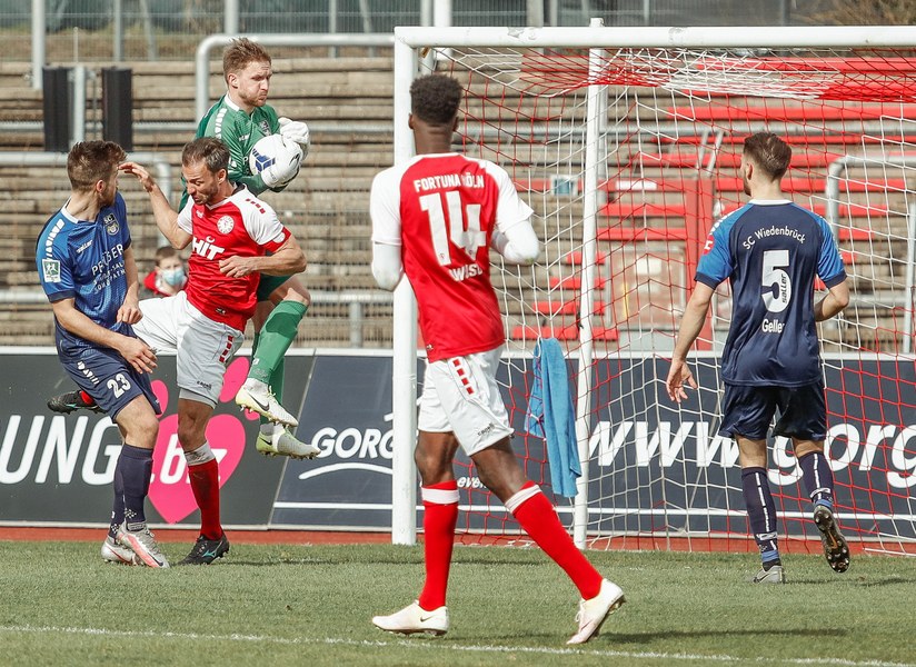 Die zweite Halbzeit knüpfte an die ersten 45 Minute an. Fortuna kontrollierte das Spiel weiterhin, bekam den letzten Pass aber nicht an den Mann. Es schlichen sich immer mehr individuelle Fehler in das Spiel der Fortuna, was die Gegner bis dahin aber nicht zu ihrem Vorteil nutzen konnten. Die Szene, die zum ersten Gegentreffer führte, ging auch von einer Unachtsamkeit aus: Rauhut ließ den Ball ins Toraus rollen, da er davon ausgegangen war, dass kein Kölner mehr am Ball war. Dem war aber nicht so, deshalb folgte ein Eckball für Wiedenbrück. Die hohe Hereingabe landete genau auf Pudel, der frei zum Kopfball kommt und in das Tor der Fortuna zur 1:0 Führung trifft (51.). Der Gegentreffer führte zunächst nicht dazu, dass die Fortuna aufhörte Fußball zu spielen. Trotzdem gelang es der Fortuna kaum noch in das letzte Drittel zu gelangen. So war es beispielsweise Salman, der zunächst durch ein schönes Dribbling seine Gegner stehen lässt, dann aber den entscheidenden Pass nicht an seinen Mitspieler bekommt und den Ball ins Toraus spielt (58.). Brenzlich wird es dann in der 62. Minute vor dem Wiedenbrücker Tor: Ochojski legte sich an der Eckfahne den Ball zurecht und brachte die Hereingabe auf Prokoph, der den Standard selbst rausgeholt hatte. Der Stürmer der Fortuna setzte den Kopfball nur ganz knapp am Tor vorbei. Nach dem Torabschluss verließ Salman das Feld und wurde durch Najar ersetzt (62.). Anschießend kam Wiedenbrück zu einer gefährlichen Aktion vor dem Kölner Tor. Beckhoff führte zwischen dem Sechzehner und der Seitenauslinie einen Freistoß aus, indem er ihn direkt aus spitzen Winkel auf den Kasten brachte. Rauhut war allerdings aufmerksam und flog rechtzeitig in die rechte Torecke, um den Ball abzuwehren (64.). Trainer Ende vollzog in der 65. Minute den dritten Wechsel und brachte Mittelfeldmann Kegel für Poggenberg. Fortuna bekam jetzt keinen Zugriff mehr auf das Spiel und es fehlten die zündenden Ideen im Offensivspiel. Der Ball wurde größtenteils hintenrum gespielt und fand kaum mehr den Weg nach vorne. In der 69. Minute war es erneut Beckhoff, der Rauhut zu einer herausragenden Rettungstat verleitete. Der durchgesteckte Pass auf Beckhoff konnte von Rauhut gerade noch vor dem heranlaufenden Stürmer weggeschlagen werden. Wiederholt ausgehend von einem individuellen Fehler resultierte das 2:0 für Wiedenbrück. Owusu verlor auf Höhe der Mittellinie den Ball an Beckhoff. Der schickte Tia, welcher das Spielgerät quer auf Tabaku legte. Tabaku beförderte den Ball eiskalt an Rauhut vorbei ins lange Eck (74.). Kurz darauf betrat Ubabuike für Brandenburger den Platz. Fortuna hatte weiterhin deutlich mehr Ballbesitz, bekam diesen aber nicht in gefährliche Situationen umgewälzt. Najar war es, der nach einer Flanke von Itter nochmals einen Abschluss auf den Kasten von Hölscher brachte. Sein Kopfball war aber nicht wuchtig genug und konnte somit problemlos vom Keeper gefangen werden (83.) In den letzten Minuten des Spiels war es gleich zweimal Rauhut, der schlimmeres verhindern konnte. Zunächst konnte Rauhut stark gegen Beckhoff klären (84.), kurz darauf parierte er stark gegen Torschütze Tabaku, der nach einem schweren Ballverlust von Försterling allein auf das Fortuna Tor zulief (86.). In der letzten Minute der Partie war es erneut Najar, der den Abschluss suchte, indem er den Ball auf den Kasten der Wiedenbrücker zirkelte. Da hatte nicht viel gefehlt, sein Schuss ging aber links am Pfosten vorbei. Kurz nach der Aktion pfiff Schiedsrichter Domnick die Partie ab und Fortuna musste sich im heimischen Südstadion gegen den SC Wiedenbrück geschlagen geben. Für Fortuna war dies außerdem die dritte Niederlage in Folge. Das nächste Spiel bestreitet die Fortuna nächste Woche Samstag, den 20.03.21, auswärts beim Bonner SC.