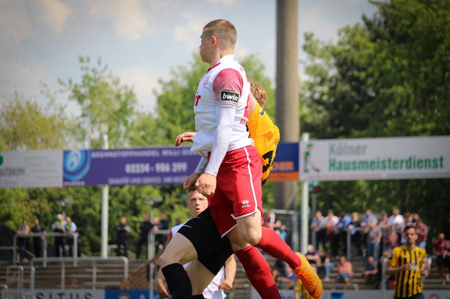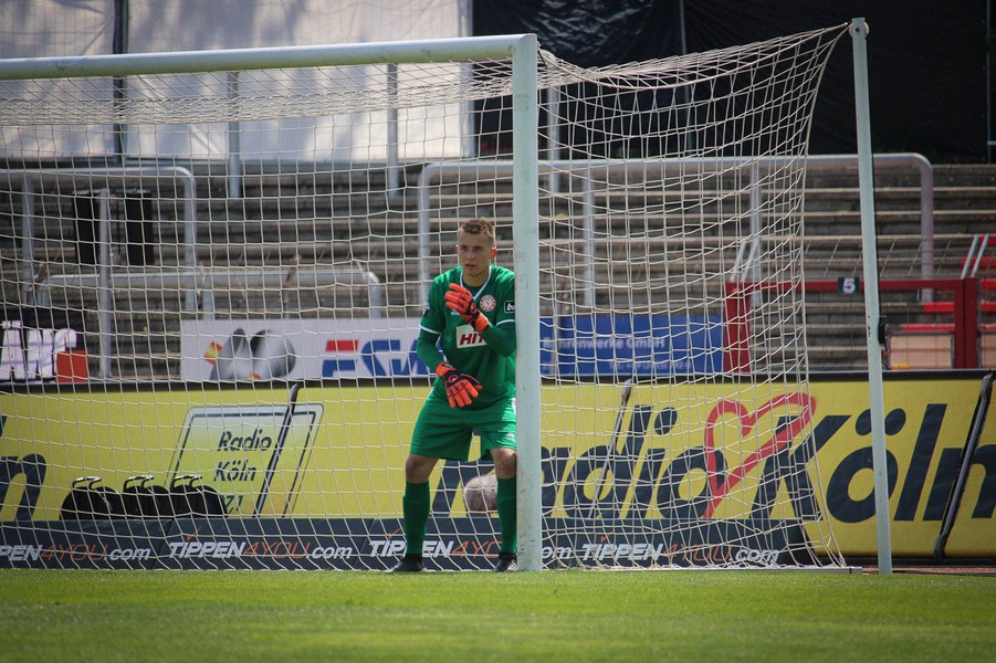 Und schon nach zwei Minuten hatte der Kölner Keeper Schwerstarbeit zu verrichten. Timo Röttger stürmte allein auf sein Tor zu. Doch Kraft parierte den Ball mit einem großartigen Reflex. In der achten Minute folgte ein gefährlicher 18-Meter-Schuss durch Nico Brandenburger. Das zeigte, dass jetzt auch die Gastgeber im Spiel waren – auch wenn die Gäste aus Baden-Württemberg zu Beginn gefährlicher wirkten.