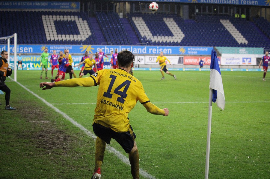 Fortuna Köln war danach überlegen. Die Folge: Plötzlich kam Hamdi Dahmani nach einem Einwurf von Dominik Ernst vor dem Uerdinger Tor an den Ball, drehte sich kurz und schob mit dem rechten Fuß aus kurzer Distanz an Benz vorbei zum 1:1 (20.) ein.