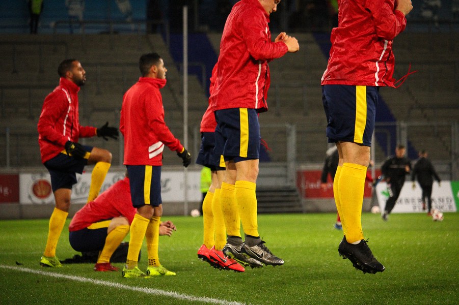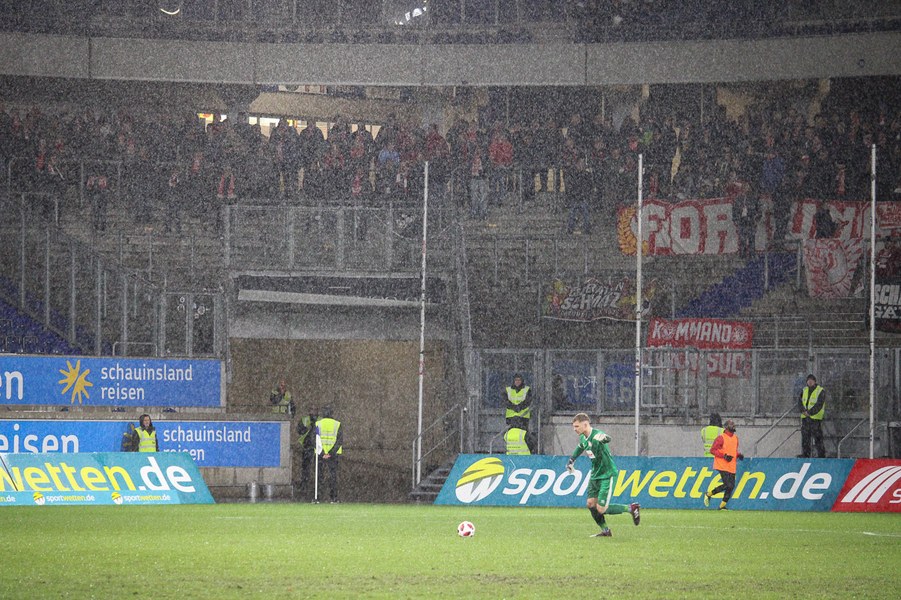 Bei strömendem Regen musste Kaczmarek nach dem Ausfall von Joel Abu Hanna in der Abwehr auch noch auf Moritz Fritz verzichten. Dafür rückten Thomas Bröker nach überstandener Grippe und Boné Uaferro wieder ins Team. Im Sturm fehlte Benjamin Pintol, sodass die Fortuna im Angriff mit Hamdi Dahmani und Robin Scheu startete.
