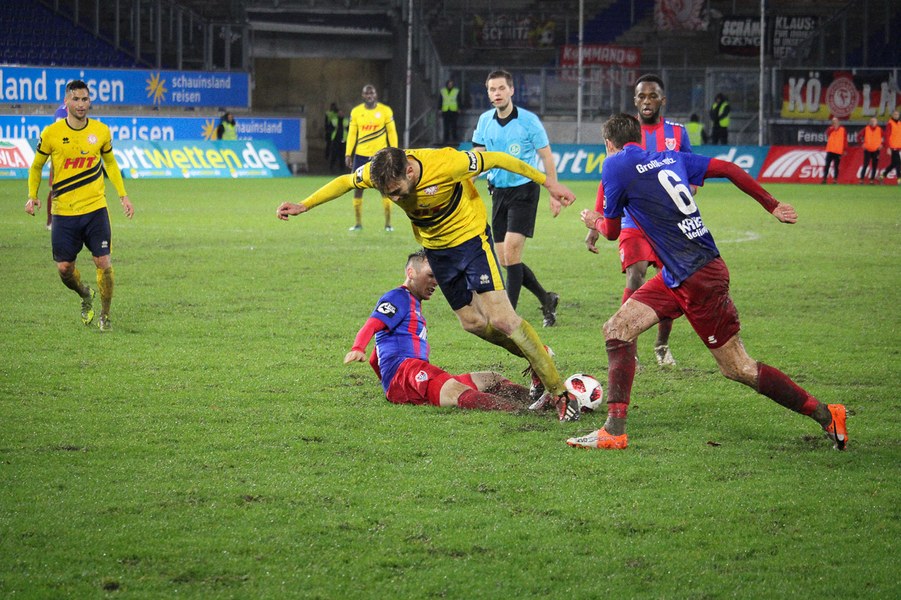 Auf einem völlig verwässerten Rasen fiel es beiden Teams zunächst schwer, ein kontrolliertes Spiel aufzuziehen. Die Fortuna hatte durch einen Flachschuss von Scheu allerdings gleich zu Beginn eine richtig gute Chance (3.). Wenig später tauchte Dahmani vor Torhüter Robin Benz in aussichtsreicher Position am Fünfmeterraum auf, doch ein Treffer gelang auch dem Kapitän der Südstädter nicht (4.).