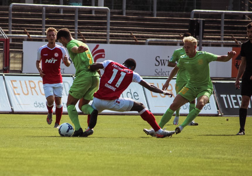 Nach dem Seitenwechsel sorgte Timo Hölscher für das erste Ausrufezeichen. Der Mittelfeldmann tanke sich bis in den Strafraum durch, setzte seinen Schuss aber knapp am rechten Pfosten vorbei (47.). Eine Minute später gab es einen Freistoß zentral vor dem Strafraum – Eine Sache für Franko Uzelac. Der Kapitän bekam nicht genug Druck dahinter und Udegbe lenke den Ball zur Seite weg. In der 53. Minute erhielt die Partie dann einen bitteren Beigeschmack. Jannik Löhden musste kurz auf dem Platz am Oberschenkel behandelt werden und wurde schließlich durch Lars Bender ersetzt. Fortuna suchte weiter den Weg nach vorne und wagte den nächsten Versuch über Francis Ubabuike. Der Neuzugang startete über seine linke Seite und legte an der Grundlinie den Ball zurück auf Owusu. Der Pass wurde aber etwas zu ungenau und Owusu brachte keinen Druck mehr hinter den Ball sodass Udegbe nicht vor Probleme gestellt wurde (58.). In der 61. Spielminute versuchte es Nico Ochojski aus der Distanz. Udegbe machte sich aber ganz lang und lenkte den Ball zur Ecke, die allerdings nichts einbrachte. Auch Julian Günther-Schmidt versucht sein Glück aus zweiter Reihe, scheitert aber ebenfalls am Keeper (77.). In der 82. Minute war es ebenfalls Günther-Schmidt, der für die Fortuna abschloss. Der Stürmer dribbelte sich durch die halbe Abwehr bis in den Strafraum, setzte den Ball aber knapp am linken Pfosten vorbei. Den Schlusspunkt der Partie setzte Francis Ubabuike. Erneut macht sich der schnelle Ausßenspieler auf den Weg nach vorne und vollendete trocken zum 3:0-Endstand (86.). Damit fuhr die Fortuna den ersten Heimsieg der Saison ein.