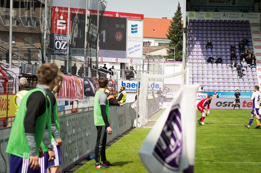 Osnabrücks Trainer Joe Enochs brachte zur Pause in Person von Menga bereits seinen zweiten Joker, der kurz nach Wiederanpfiff die Bremer Brücke wachküsste (46.). Kurz darauf zimmerte Heider den Ball aus zentraler Position am Tor vorbei (50.). Die Fortuna schaffte es aber, in Person von Bender für Entlastung zu sorgen (51.). Nach einer Kombination über Dahmani und Rahn erarbeitete man sich die zweite Ecke und die köpfte Uaferro zum 2:0 für die Südstädter ein (61.). Osnabrück wirkte geschockt. Die Fortuna verpasste es nun sogar frühzeitig den Deckel drauf zu machen: Nach einem Konter ließ Theisen das 3:0 frei vor dem Tor liegen. Die anschließende Ecke köpfte Mimbala drüber (64.). Auch in der Folge hatte die Koschinat-Elf in Person von Theisen und Dahmani die besseren Möglichkeiten (72./74.). Eine Viertelstunde vor Schluss verließen die ersten Osnabrücker bereits das Stadion. Der Bann war beim VfL augenscheinlich auf dem Platz gebrochen. Das Spiel plätscherte mehr oder weniger vor sich her, während beide Fanlager sich mit Gesängen feierten. Auch der Anschlusstreffer durch Wriedt (90./FE) änderte nichts mehr am Ausgang der Partie. Mit dem Sieg feiern die Kölner aus eigener Hand drei Spieltage vor Schluss den Klassenerhalt.