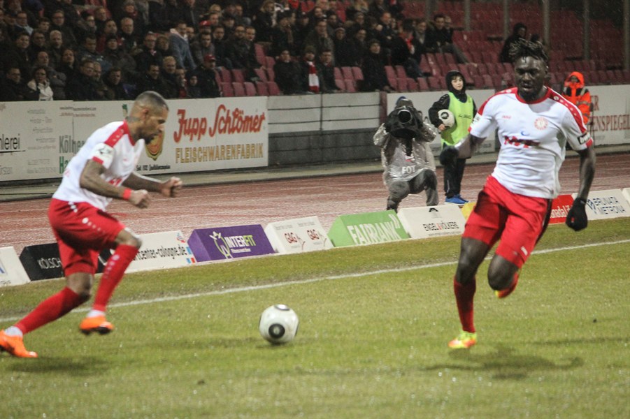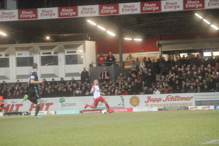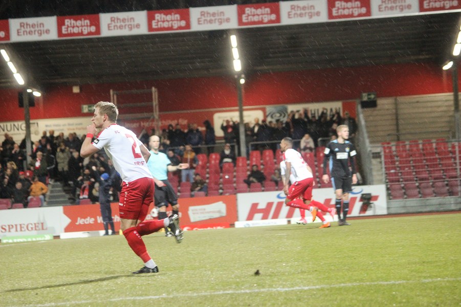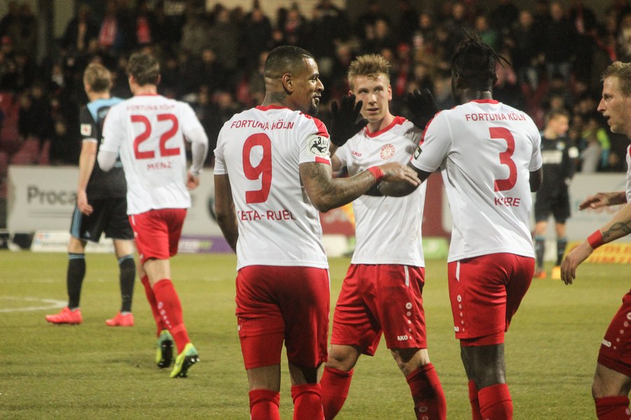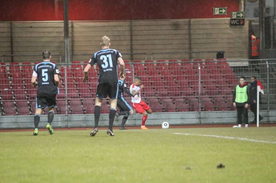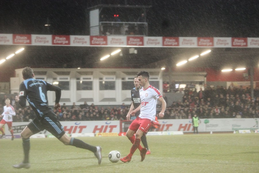 Drei Siege in Folge konnten die Kölner zuletzt feiern und auch unter Flutlicht gab es schon einiges zu feiern für die Fortuna. Dementsprechend traten die Kölner mit breiter Brust auf und griffen die Sachsen früh an - mit frühem Erfolg: Nach 27 Sekunden eroberte Scheu tief in der gegnerischen Hälfte den Ball und steckte sofort auf Keita-Ruel durch. Der Stümer lief frei aufs Tor zu und zirkelte den Ball sehenswert in den Winkel (1.). Chemnitz ließ sich nicht schocken und versuchte das frühe Gegentor weg zu machen. Chancen konnten sie sich jedoch noch nicht heraus spielen. Stattdessen fiel das 2:0: Keita-Ruel wurde über die rechte Seite von Ernst freigespielt und konnte eine Hereingabe verwerten (17.) Der CFC investierte daraufhin noch mehr, erarbeitete sich eine Reihe von Standards und kam fast zum Anschlusstreffer: Frahn köpfte das Spielgerät jedoch ans Aluminium (23.). Die Fortuna ließ chemnitz kommen und spekulierte auf Ballgewinne, um schnell umzuschalten. Wieder eroberte Scheu kurz hinter der Mittelline den Ball und schickt dieses Mal den für den verletzten Kegel in die Startelf gerückten Okan Kurt. Der Mittelfeldspieler lief seinen Gegenspielern davon und ließ im Strafraum noch zwei Verteidiger stehen, ehe er das 3:0 erzielte (31.). Die Fortuna zeigte sich abgezockt und nutzte nach frühem Pressing nahezu jede Chance einskalt. Kurz vor der Pause war es dann wieder Frahn, der die Fortuna in Gefahr brachte. Er köpfte frei aufs Tor, sein Abschluss war aber zu zentral und damit kein Problem für Boss (40.) Auf der anderen Seite verpasste Scheu aus spitzem Winkel eine noch höhere Pausenführung für die Fortuna (45.).