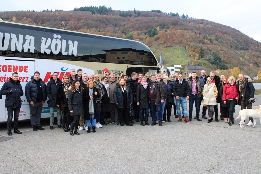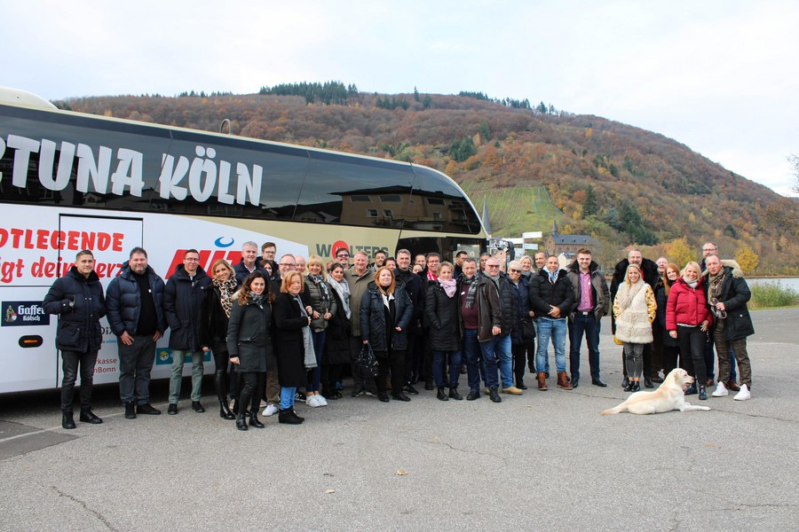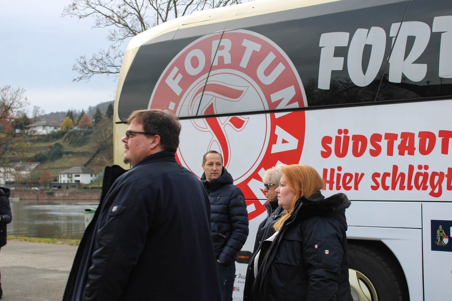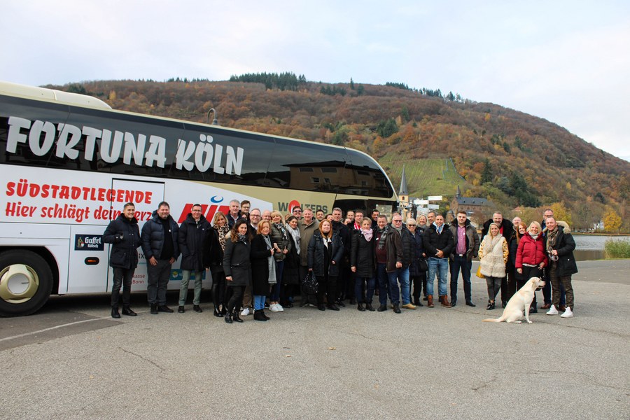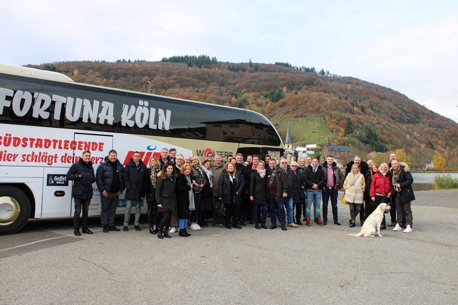 Seinen Start fand das Event am Samstagmorgen mit einem Frühstück bei Procar in Raderthal. Danach ging es für die Partner standesgemäß mit dem Mannschaftsbus Richtung Mosel. Ziel war die Weinmanufaktur Christian Schardt. In der Weinmanufaktur angekommen, gab es die erste Weinverköstigung. Anschließend besichtigte das Fortuna-Netzwerk den Weinkeller und genoss den Blick auf die Weinberge. Nach einer weiteren Verkostung und gemütlichem Beisammensein mit Kaffee und Kuchen, ging es für die Partner der Fortuna wieder zurück nach Köln
