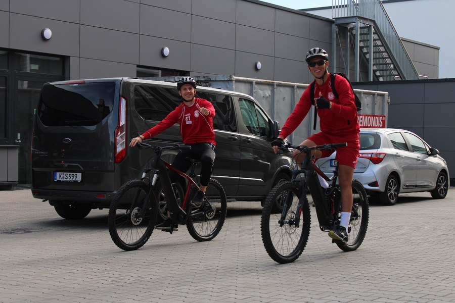 Am vergangenen Donnerstag fand die erste Fortuna-E-Bike Tour mit den Partnern Zweirad Prumbaum und der ZEG statt. Nach einer kurzen Begrüßung starteten die beiden Touren der rund 40 Teilnehmer. Mit dabei auch die Spieler Roman Prokoph, Martin Velichkov und Nico Ochojski.