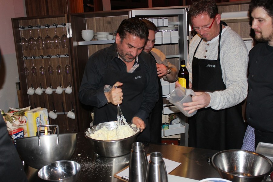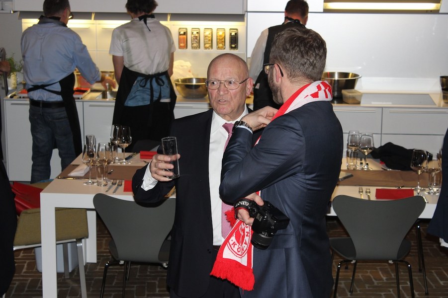 Tobias Vianden, Geschäftsführer von „bulthaup am mediapark“, lud dabei die Fortuna und ihre Partner zu einem weiteren Kochabend ein. Nach Begrüßung durch Gastgeber Tobias Vianden, Fortuna-Präsident Klaus Ulonska und Benjamin Bruns, Leiter Sponsoring/Vertrieb wurde ein Drei-Gänge-Menü zubereitet. Dabei übernahm Tobias Fink mit seiner Gruppe die Vorspeise. Markus Kürsten (Tischlerei Markus Kürsten), Stefano Straberg (WinLocal GmbH), Rainer Freigeber (Revisco GmbH) und Josef Hermann (Coca Cola) kochten zusammen mit dem Linksverteidiger. Für den Hauptgang zeichnete Boné Uaferro mit seiner Gruppe verantwortlich. Dazu zählten Ralf Müller (RM Generalbau Köln GmbH), Goodarz Mahbobi (axxessio GmbH), Martin Wambach (Rödl & Partner), Michael Hess (Autohaus Yvel Köln) und Arnd Iffland (eurorad Deutschland GmbH). Schließlich übernahm Dennis Engelman mit seiner Gruppe die Zubereitung des Desserts. Mit dem 20-Jährigen kochten: Frank Reuter (Kölner Hausmeisterdienst), Savas Berktas (Cologne Sportspark), Ralf Nier (RehaZen Ralf Nier) und Michael Husch (Hu-Ro GmbH). Der Kölner Koch Jens Eichberger zeichnete dabei für das Menü verantwortlich und leitete die Fortuna-Partner an.