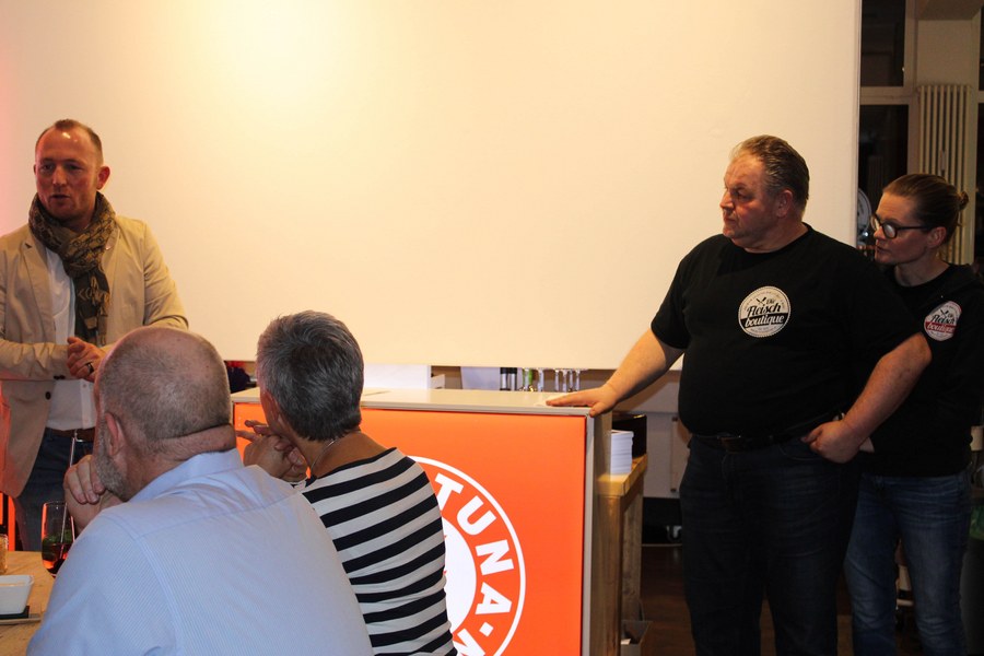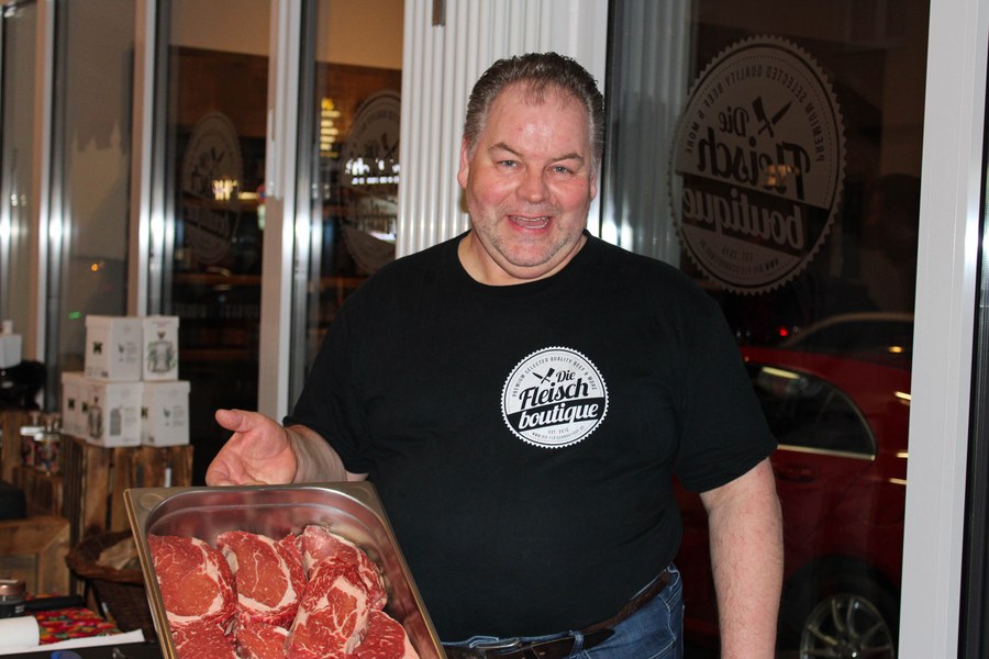 Doch bei der Auswahl der Produkte endete der Aufwand nicht. Auch mit Tipps und Tricks bei der Zubereitung stand das gesamte Team der Fleischboutique jederzeit gerne bereit. Günther Junkersdorf ließ es sich nicht nehmen, immer wieder genau über die Herkunft, Zubereitung und sonstige Besonderheiten des Fleisches zu informieren. So gingen die Gäste am Ende nicht nur gut gesättigt, sondern auch bestens informiert nach Hause.