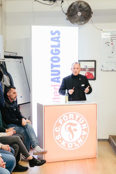 Fortuna Köln bedankt sich bei Tobias Plester und Stefan Kurth von junited AUTOGLAS für die Ausrichtung des Events, sowie bei der Privatbrauerei Gaffel, Gaffel am Dom und der Haaner Felsenquelle für Speisen und Getränke.