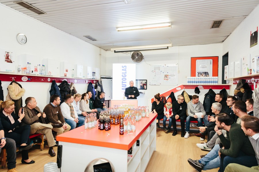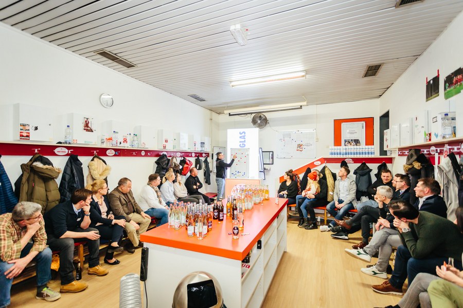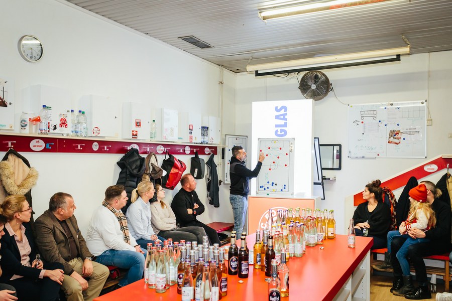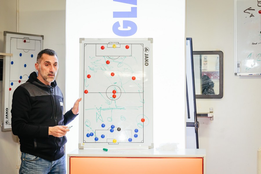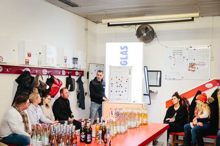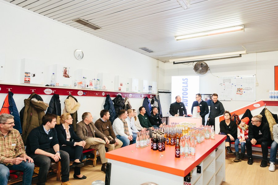 Zum insgesamt fünften Mal und zum zweiten Mal in der laufenden Saison warfen Freunde und Partner beim junited AUTOGLAS Kabinentalk einen Blick hinter die Kulissen der Fortuna. Auch gestern kamen rund 30 Freunde und Partner der Fortuna in der Mannschaftskabine zusammen und lauschten den Worten von Cheftrainer Thomas Stratos. Während es im ersten Teil der Veranstaltung um unseren Trainer und seinen Werdegang als Fußballer und als Mann an der Seitenlinie ging, stand im zweiten Teil die taktische Ausrichtung der Fortuna im Mittelpunkt.
