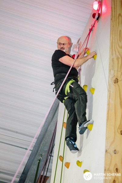 Und auch die Kletterbegeisterten aus dem Fortuna-Netzwerk hatten sichtlich Spaß. Kein Wunder also, dass sich einige Partner nach der neun Meter hohen auch noch an der „großen“ Kletterwand (17 Meter) versuchten.