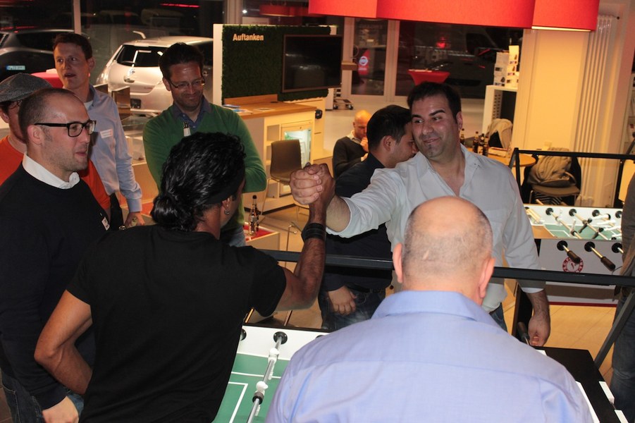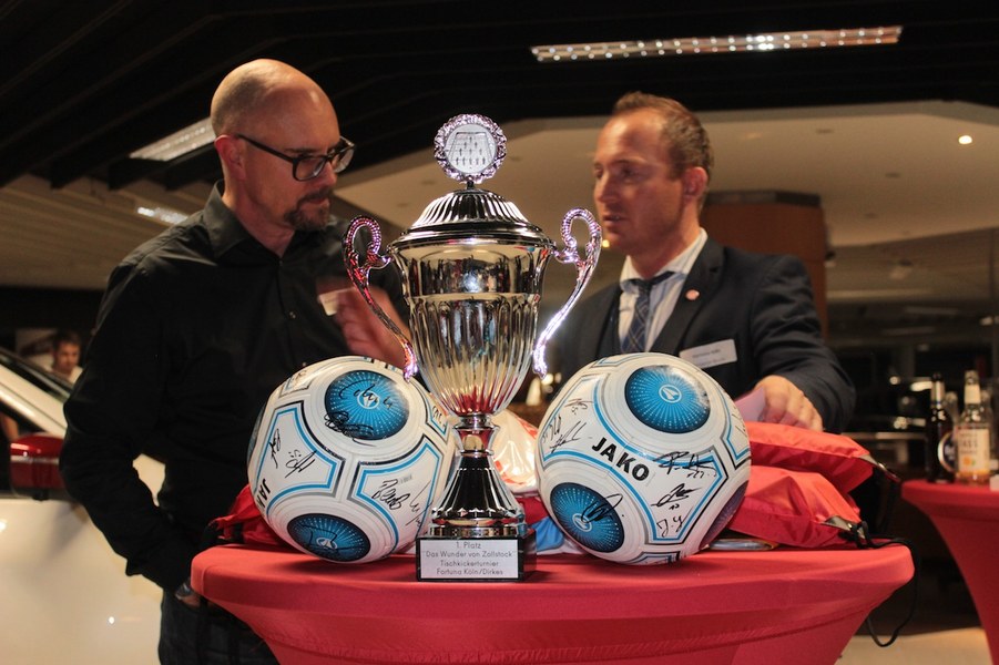 Bereits zum zweiten Mal veranstaltete die Automobilgruppe Dirkes ein Kickerturnier für das Fortuna-Netzwerk. Elmar Vogel, Leiter Unternehmenskommunikation der Automobilgruppe Dirkes und Benjamin Bruns, Mitglied der Geschäftsleitung von Fortuna Köln, luden dafür in die Dirkes-Zentrale am Maarweg ein, wo das Turnier unter dem Motto „Das Wunder von Ehrenfeld“ statt fand. Fortuna-Partner meinkicker.com führte dabei durch das Turnier. Als Preis winkten zwei Nissan Champions League Tickets. Die sicherte sich DFV, die ungeschlagen durch das Turnier marschierten und im Finale das Fortuna-Team mit Florian Hörnig und Johannes Rahn bezwangen.