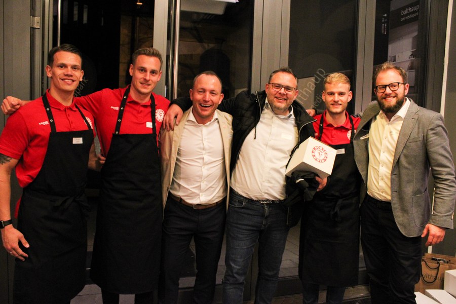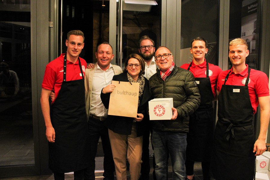 Die Fortuna bedankt sich bei Barbara und Tobias Vianden für die Ausrichtung des Abends, sowie der Privatbrauerei Gaffel, der Weinmanufaktur Christian Schardt und der Haaner Felsenquelle für die Unterstützung des Kochevents bei bulthaup am mediapark.