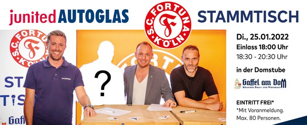 Neuer Termin für den „S.C. Fortuna Köln Stammtisch im Gaffel am Dom“ - presented by junited AUTOGLAS