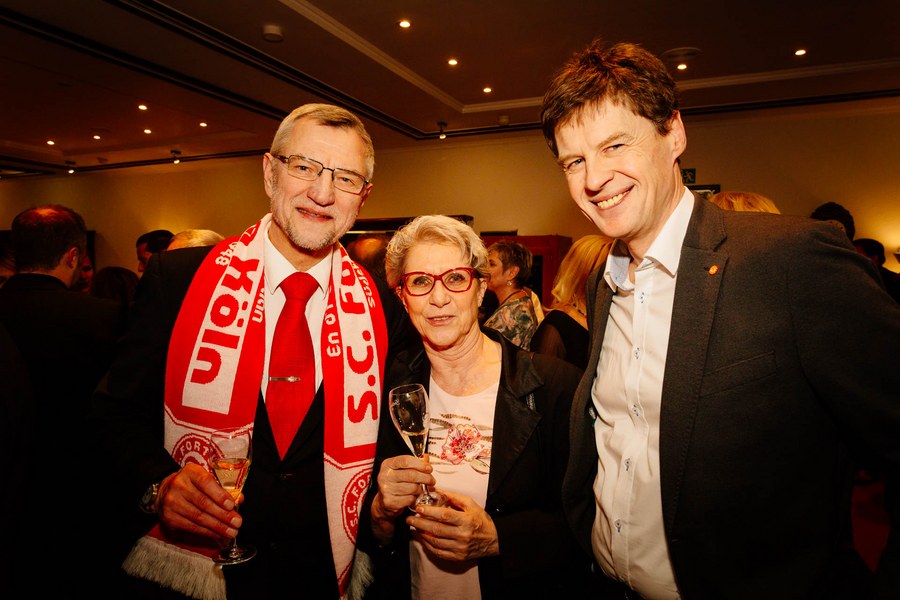 Nach einem Sektempfang wartete auf Mannschaft und Partner ein vier-Gänge Menü von Sternekoch Erhard Schäfer. Dabei saßen Spieler und Partner gemischt an den Tischen, damit sich die Fortuna-Familie weiter näher kennenlernen konnte. Ein Rahmenprogramm zwischen den Gängen sorgte für gute Unterhaltung. So bekam Helge Ulonska eine in Bronze gegossene Original-Stadionwurst überreicht für ihr jahrelanges Engagement beim Südstadtclub. Die Fortuna-Freunde Cornel Wachter (Künstler), Irmgard Stoffels (EXPRESS), Andreas Hupke (Bezirksbürgermeister), Hartmut Priess (Bläck Fööss), Heribert Rösgen (Kölner Stadt-Anzeiger), Wolfgang Fahrian (Fortuna-Torwartlegnde), Pfarrer Hans Mörtter und Erhard Schäfer hatten den Preis ins Leben gerufen, der regelmäßig für besondere Leistungen zu Gunsten der Fortuna verliehen werden soll.
