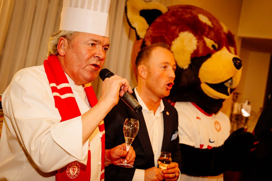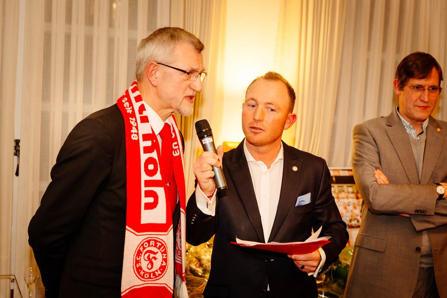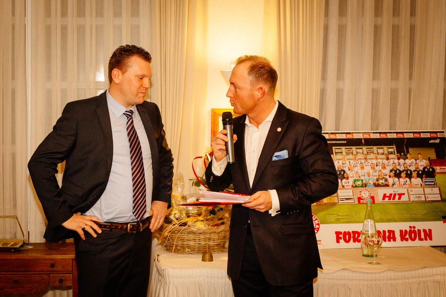 Des Weiteren blickte Michael W. Schwetje, Geschäftsführer der Fortuna Köln Spielbetriebsgesellschaft auf die wirtschaftliche und sportliche Entwicklung. Fortuna-Trainer Uwe Koschinat schaute schließlich auf die sportlichen Aufgaben voraus. Am kommenden Samstag steht hier mit dem Heimspiel gegen den 1. FC Magdeburg der Rückrundenauftakt in die 3. Liga an. „Diese Veranstaltung soll die Fortuna-Familie in besonderem Ambiente einschwören auf das anstehende Jahr. Im letzten Jahr haben wir mit Erhard Schäfer 100 Leute begrüßen können, diesmal waren es 150. Man sieht auch hier, wie sich das Netzwerk entwickelt und weiter zusammen wächst. Ein großer Dank gilt Erhard Schäfer und dem gesamten Team vom Landhaus Kuckuck für diesen besonderen Abend“, zeigte sich Benjamin Bruns, Leiter Sponsoring & Vertrieb, mit der Veranstaltung zufrieden.