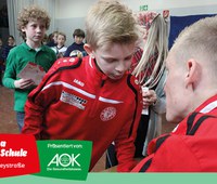 Der Donnerstag stand wieder ganz unter dem Motto „Fortuna macht Schule“: Thomas Kraus, Jan-Andre Sievers und Boné Uaferro besuchten dabei die GGS Loreleystraße und trainierten mit Grundschülern. Zudem gab es anschließend eine Frage- und Autogrammstunde.