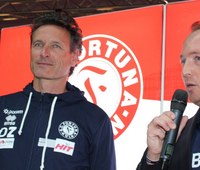 Nachdem sich die Anwesenden am Buffet gestärkt hatten, begrüßte Benjamin Bruns, Mitglied der Geschäftsleitung bei Fortuna Köln, erst einmal alle Gäste. Zu denen gehörte natürlich auch der neue Trainer...
