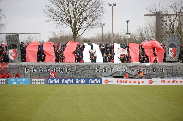 Im Südstadion hat grundsätzlich die Stadionordnung Gültigkeit. Spruchbänder oder Banner dürfen keine politischen, beleidigenden oder verunglimpfenden Inhalte haben. Aufgrund von Brandschutzvorschriften sind Transparente im Vorfeld anzumelden, Choreografien bedürfen einer ausführlichen vorherigen Absprache. Die vollständige Anmeldung inklusive Material-Zertifikaten muss spätestens sieben Tage vor dem Spieltag bei der Fortuna Köln Spiel­betriebs­gesell­schaft mbH vorliegen. Bestimmungen des Brandschutzes (alle Materialen mindestens B1-zertifiziert) sind dabei einzuhalten und werden am Spieltag durch Vertreter der Feuerwehr überprüft.